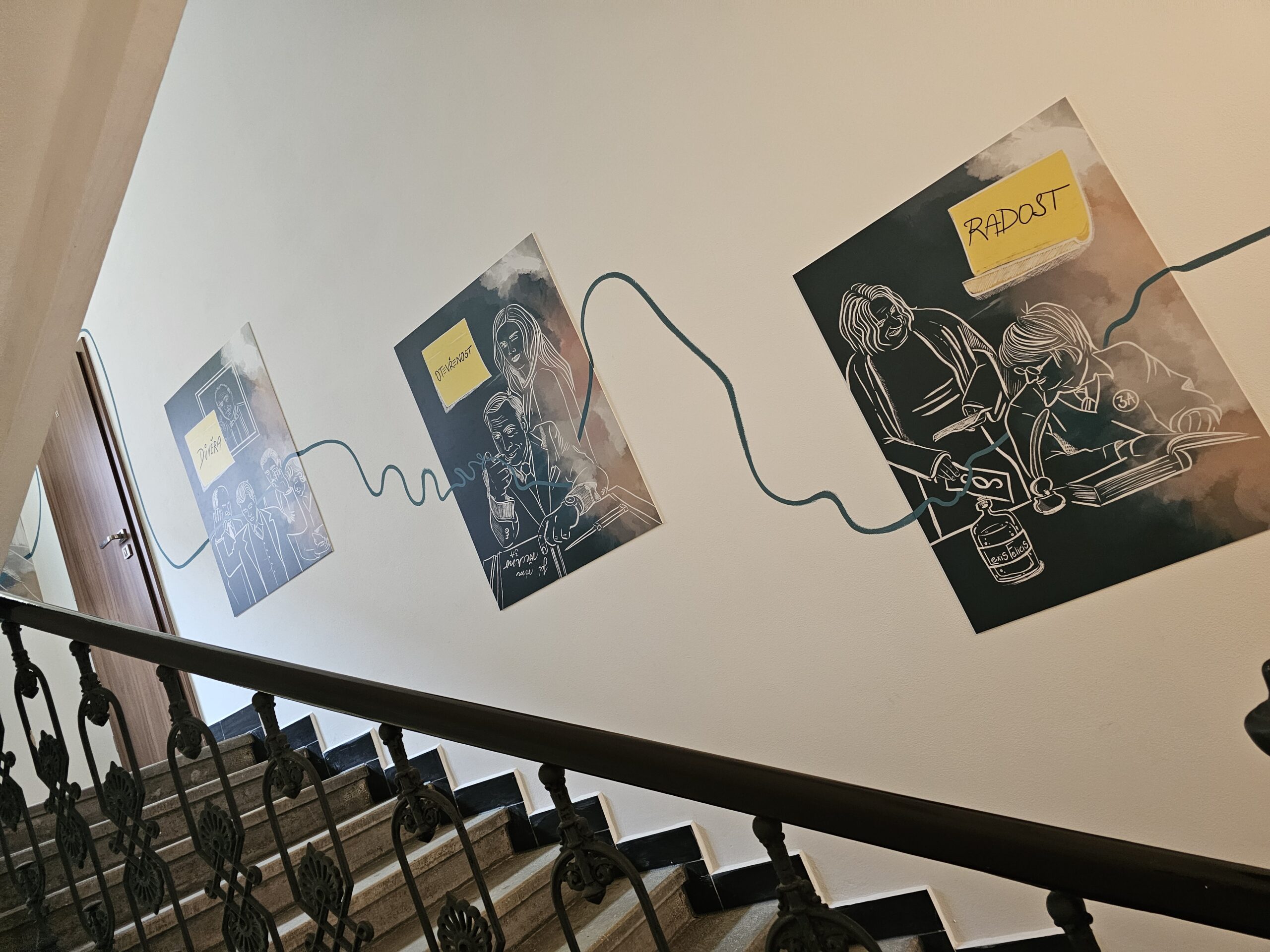 Inspiraci hledám všude kolem sebe. Jsem ten typ podivína, co pozoruje lidi, poslouchá cizí rozhovory (pardon :)), zapisuje si postřehy a kreslí z nich příběhy. Každá zakázka začíná rozhovorem s klientem. Ptám se, co má rád, co se mu líbí a nelíbí, kdo k němu chodí. Nechávám si vyprávět historky z práce. Poslední zakázka byla u 3advokáti s.r.o a tady jsem se třeba zajímala i o to, jakou mají chemii jako tým, o čem se spolu baví. Vznikla tak unikátní instalace, kde jsem spojila jejich koníček – filmy a právo.
