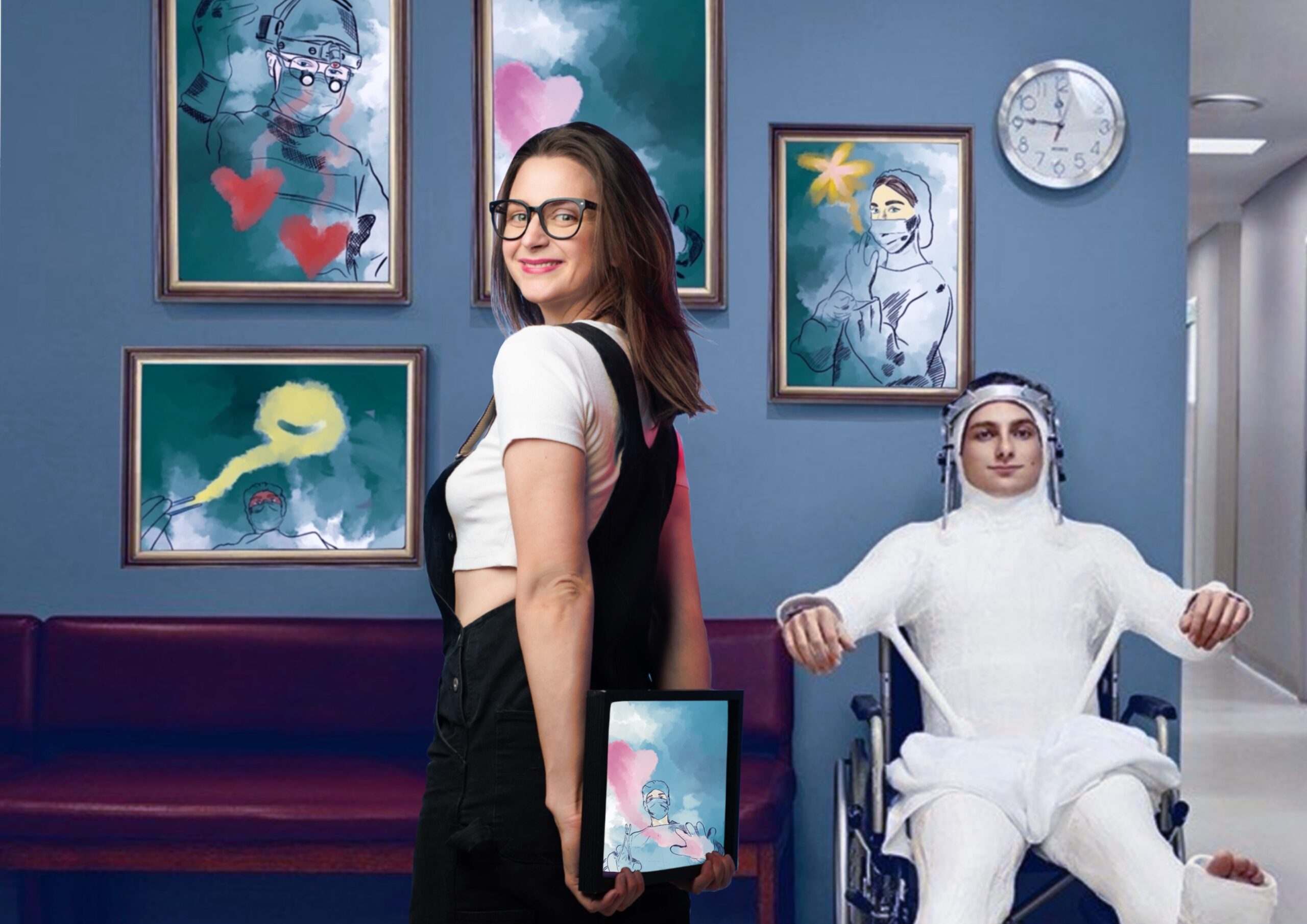 Plány? Nejprve ta „dospělácká“ část – dokončit web a podat daňové přiznání (kdo by řekl, že jednou budu řešit formuláře místo kompozice!). Pak dodělat zakázku pro jednu skvělou fyzioterapeutku a oslovit další lékaře. Mým snem je výstava a také dokončení komiksu, který už dlouho čeká. A hlavně chci změnit to, co mě vždy štvalo – čekárny plné bílých zdí a nástěnek s obrázky nemocí. Prevence je důležitá, ale vše má mít míru. Chtěla bych, aby se lidé v ordinacích usmívali, ne báli. Aby se dívali na něco krásného, ne na strašáky. Možná je to naivní, ale věřím, že umění může léčit ještě dřív, než se pacient dostane k doktorovi. A tak je můj plán jednoduchý – měnit čekárny v místa pohody. Jeden obraz po druhém.